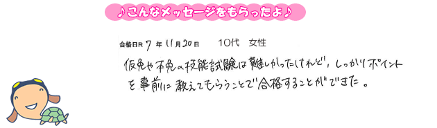 技能試験に向けて意欲的に学べました。ありがとうございました。