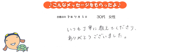 いつも丁寧に教えてくださり、ありがとうございました。